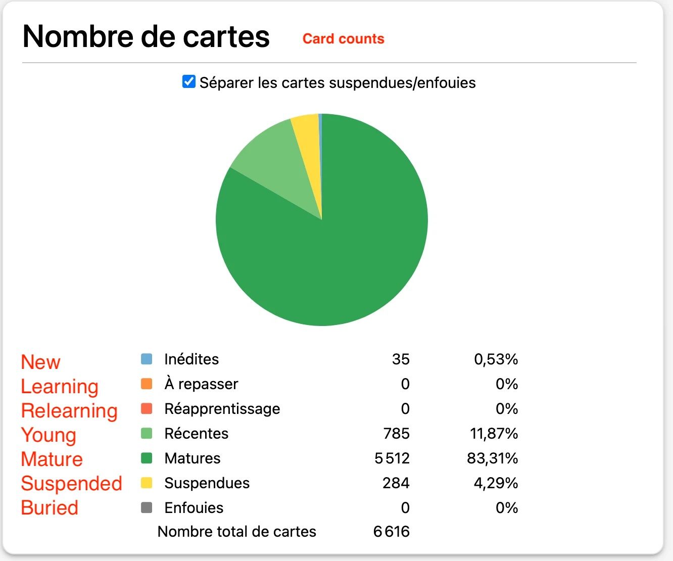 在这套流程跑通之后,唯一需要做的就是坚持。从2024年7月12日开始使用Anki学习,到2025年4月22日收到CLB7成绩,期间每天坚持完成当日的复习任务,只有5天例外。在通过考试后,我将每天复习的上限设置为35个卡片,来维持法语能力不退化。